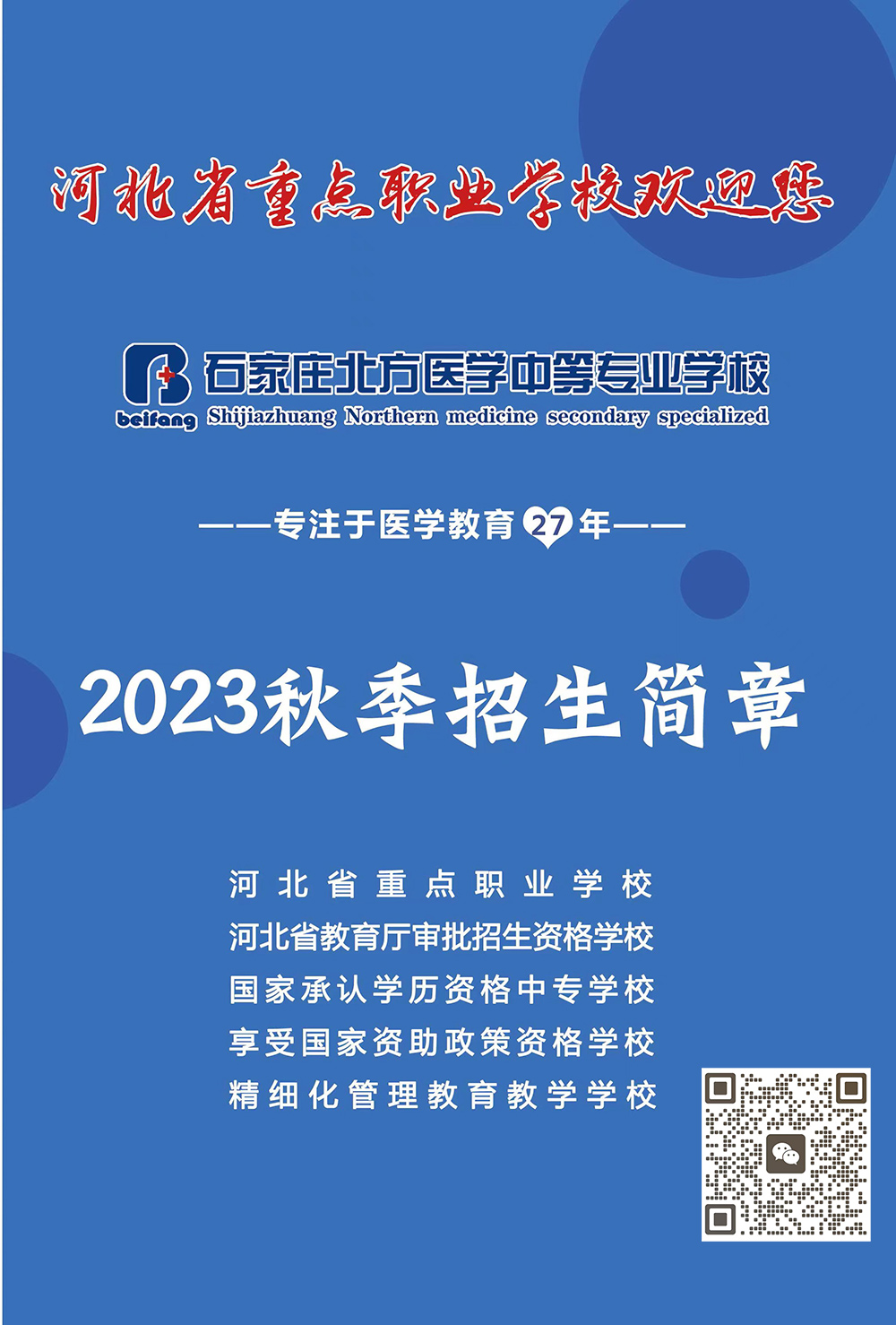 磁县初三毕业生:石家庄北方医学中专学校2023招生简章