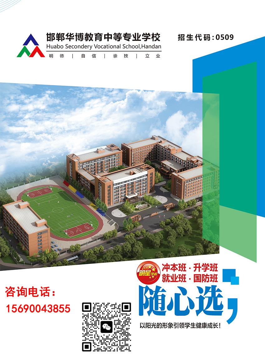 邯郸华博教育中等专业学校(原名邯郸清华万博),成立于2007年,是河北省教育厅备案、邯郸市教育局批准成立的一所全日制中专院校。学校环境优美,教学设施先进,专业特色鲜明,培养了一批又一批的优秀毕业生。我校以社会需求为导向,以教学质量为核心,以实现学生升学和高薪就业为目标,课程实时更新,积极改进授课模式,多次在河北省职业技能大赛和邯郸市中等职教技能大赛中荣获奖项。现设有:升学班、精英班、英才班、就业班、国防班,单招集训班,学生可结合自身发展需求及专业定位随心选择。多年来我校升学率稳居邯郸市前列,毕业生也实现对口就业,得到了社会和家长的一致好评。