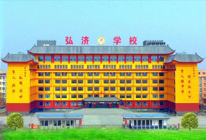 弘济学校占地近500亩,建筑面积20余万平方米,建有综合楼、教学楼、实验楼、公寓楼等18栋高标准大楼,错落有致;党建活动室、学术报告厅、美术馆、图书馆、舞蹈房、音乐室、书画室、微机室、体育场、游泳馆、心理咨询室等设施一流,应有尽有;教室、师生公寓皆为空调、地暖双配套,配有矿泉直饮水,公寓内设有洗漱面盆和水冲式卫生间;餐厅明厨亮灶、干净卫生,荤素搭配,物美价廉;高标准配备医务室,医务人员全天候在岗,为学生健康成长保驾护航;校园内树木环绕、花团锦簇、生机盎然。已成为文化校园、绿美校园、智慧校园、平安校园、健康校园、快乐校园的“六园”学校,既是让农村孩子享受优质教育资源的一块高地,又是助力教育标准化、均衡化发展的一片圣地。